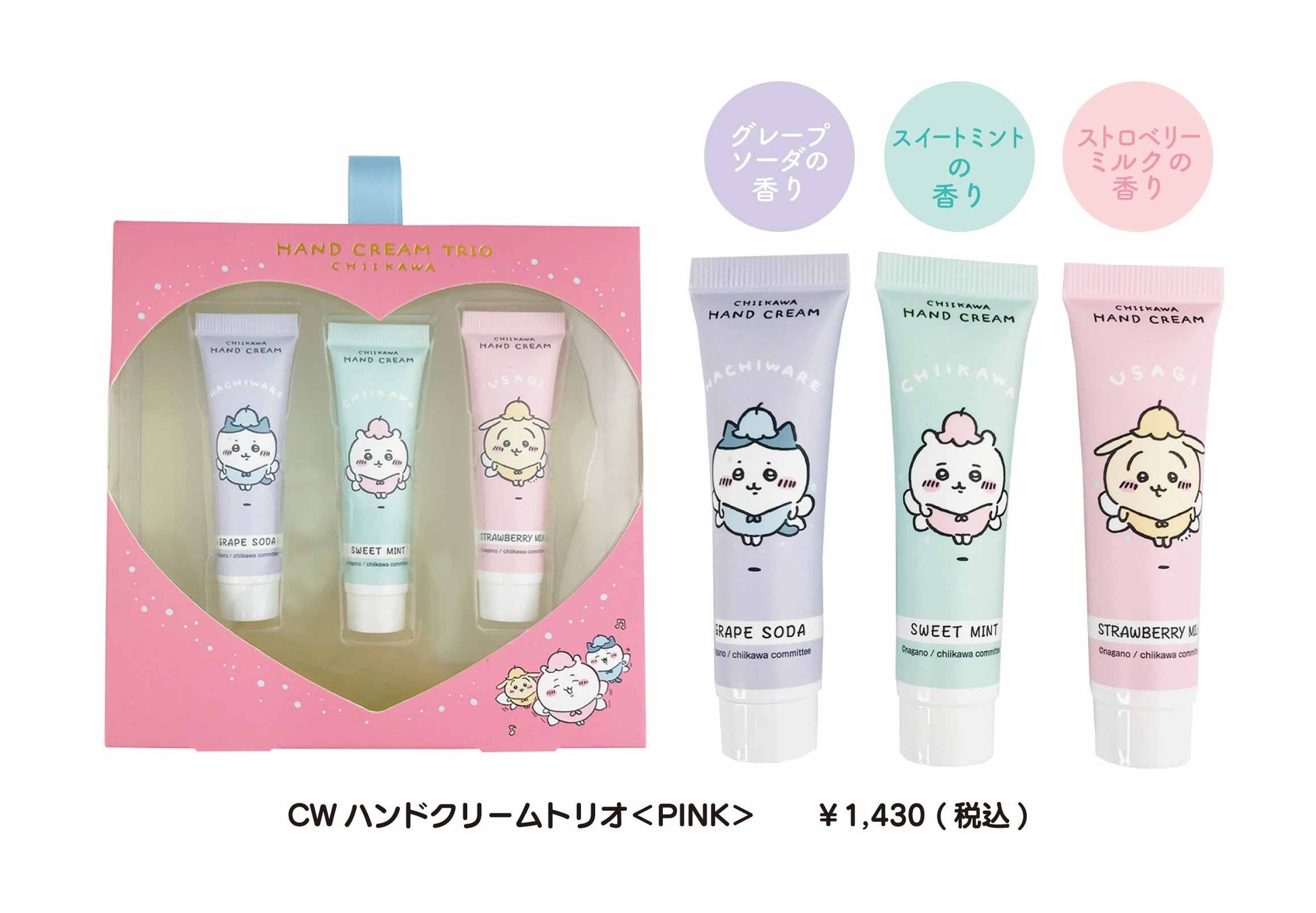 (写真右上下)「ちいかわ」ハンドクリームトリオ 2アイテム 各1,430円(税込価格)