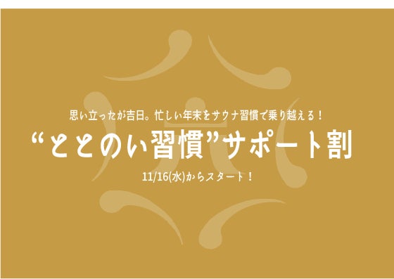 ※「”ととのい習慣”サポート割」実施期間:11月16日 16:00〜12月28日 23:59