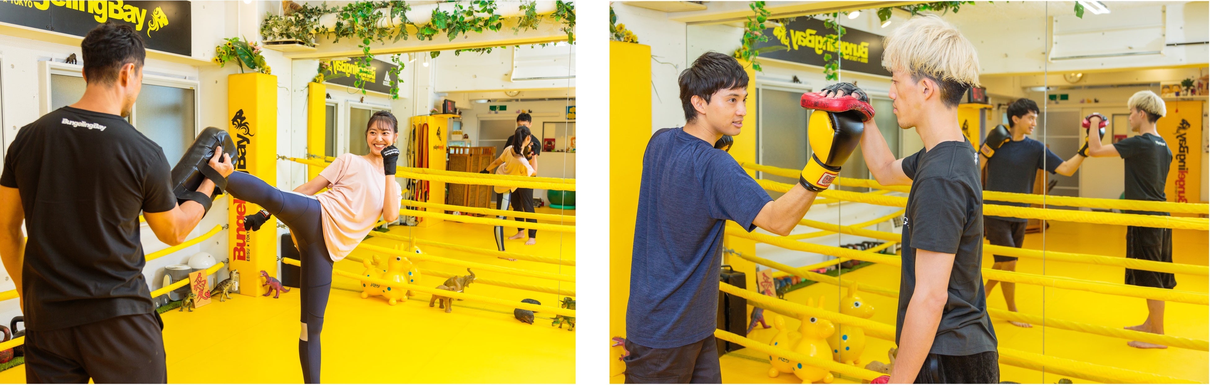 『バンゲ』は、キックボクシングを取り入れた独自のパーソナルトレーニングを提供するフィットネスジムです。2008年のオープン以降、キックボクシングのフィットネスとしての可能性に着目し、10年以上にわたり日本における”キックボクシングフィットネス”を牽引してきました。