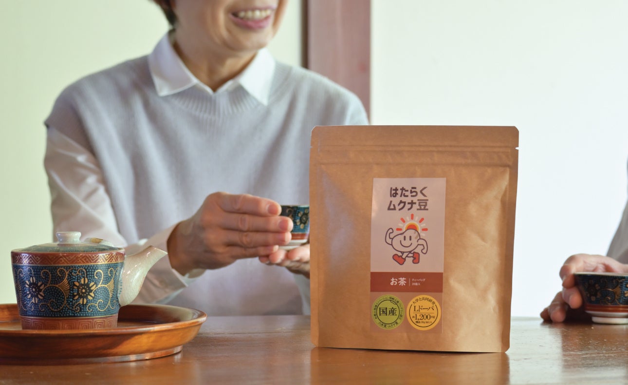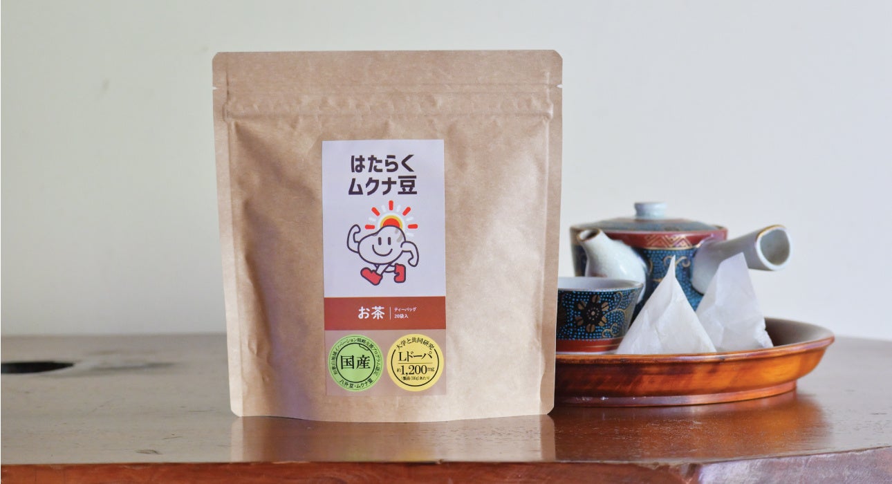 ●大阪河﨑リハビリテーション大学との共同開発により日本初の「熱に弱いL-ドーパを壊さず管理する」ムクナ豆茶開発に成功。ティーバッグ20袋入り1,450円(税込)にて販売開始。