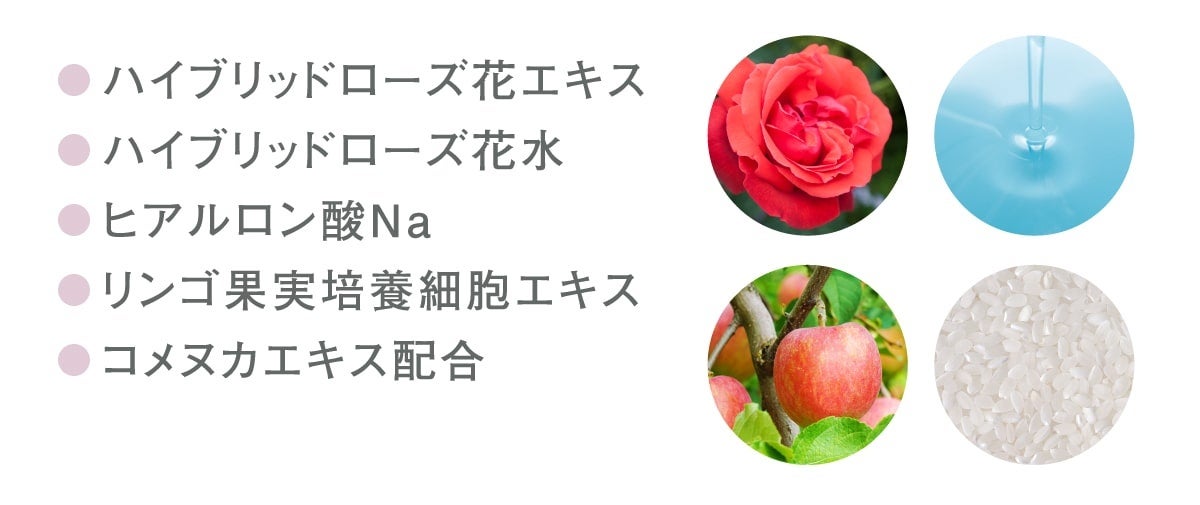 与えた水分をたっぷりとお肌へ蓄え、加齢や乾燥に負けない肌へ導きます。