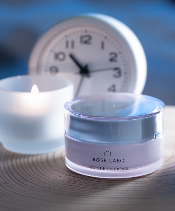 私たちはROSE LABOは、日本語に直訳すると”バラ研究所”です。 バラの可能性を追求し、沢山の方々にバラを通して、「美しさ・健やかさ・幸せ」を届けたいという想いからこの社名をつけました。 バラの研究をしていくなかで、「バラの香りは脳へアプローチし、記憶力を高めることができる」という記事を発見し、とても胸が踊りました。 そこで「脳へアプローチし、心安らぐバラの香りに包まれながら、眠っている間に集中ケアできるアイテム」を作ろうと開発に着手しました。 私自身、早朝から働くバラ農家であり、会社経営と日々奮闘する中で睡眠の質にはとてもこだわっています。 貴重な睡眠時間をバラの力でアプローチ出来ないかと模索し誕生したのが本製品です。 日中の紫外線や乾燥、ストレス、睡眠不足などで肌リズムが乱れがちな現代人を応援するアイテムにすべく”時計遺伝子”に着目しました。 時計遺伝子は、人の身体に存在し約24時間の周期的なリズムを刻み、皮膚の状態も時刻によって変化しています。 シートマスクのように高密着で一晩中潤いが続く、濃厚なナイトクリームです。 お忙しい日々を過ごす皆さまの、心地よい安眠にバラでお供できますと嬉しいです。 “Dream With Roses” ぜひ早速、今晩からお試しくださいませ。