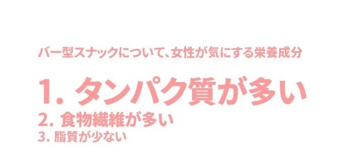 【ナッツバーなどバー型スナック調査】男女とも「高たんぱく」「食物繊維豊富」を志向。男性は高カロリー派・女性は低脂質を重視