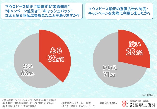 続いて、「マウスピース矯正の宣伝広告の制度・キャンペーンを実際に利用しましたか?」と質問したところ、2割以上の方が『はい(28.4%)』と回答しました。
