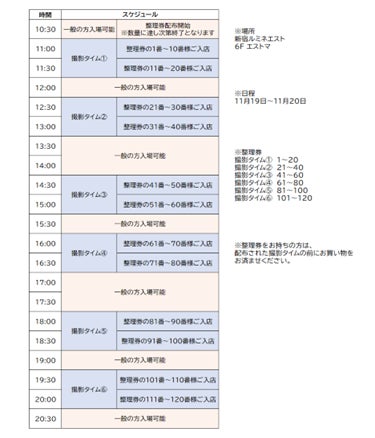 ※整理券をお持ちでない方は、ご購入金額が¥9,000(税込)を超えても記念撮影にご参加いただけません。