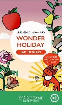 新たに登場した「ワンダーホリデーゲーム」は、果実の国に住むキツネさんが、ホリデーギフトづくりのために、香りのもととなる果実や花を収穫しているのをお手伝いするゲーム。収穫した果実や花の得点に応じてロクシタンのホリデーコレクションのギフトセットが当たるキャンペーンに応募できます。高得点を目指しておいしい香りのホリデーギフトをゲットしましょう!