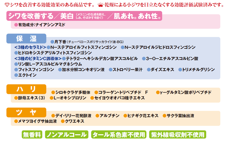 ◆シワ改善、美白※1、肌あれを防ぐ