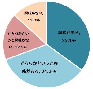 「ファスティング(断食)」を知っている全国の女性630名を対象に、「ファスティング(断食)」に興味があるか質問をしたところ、69.4%が「興味がある」(興味がある:35.1%、どちらかというと興味がある:34.3%)と回答しました。