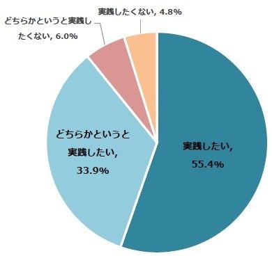 「ファスティング(断食)」を実践したことがあると回答した251名の方を対象に、今後も「ファスティング(断食)」を実践したいと思うか質問したところ、89.3%が「実践したい」(実践したい:55.4%、どちらかというと実践したい:33.9%)と回答しました。