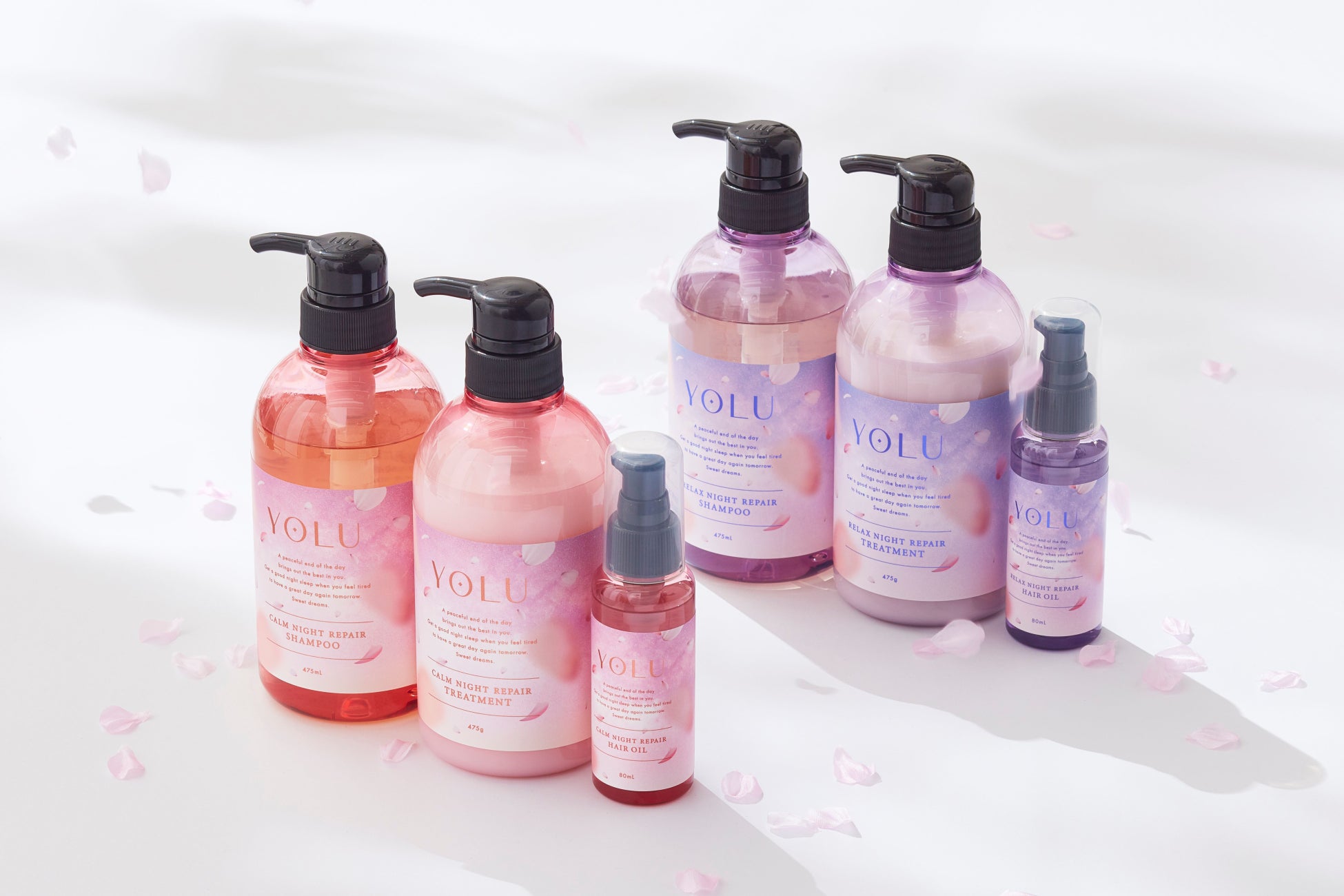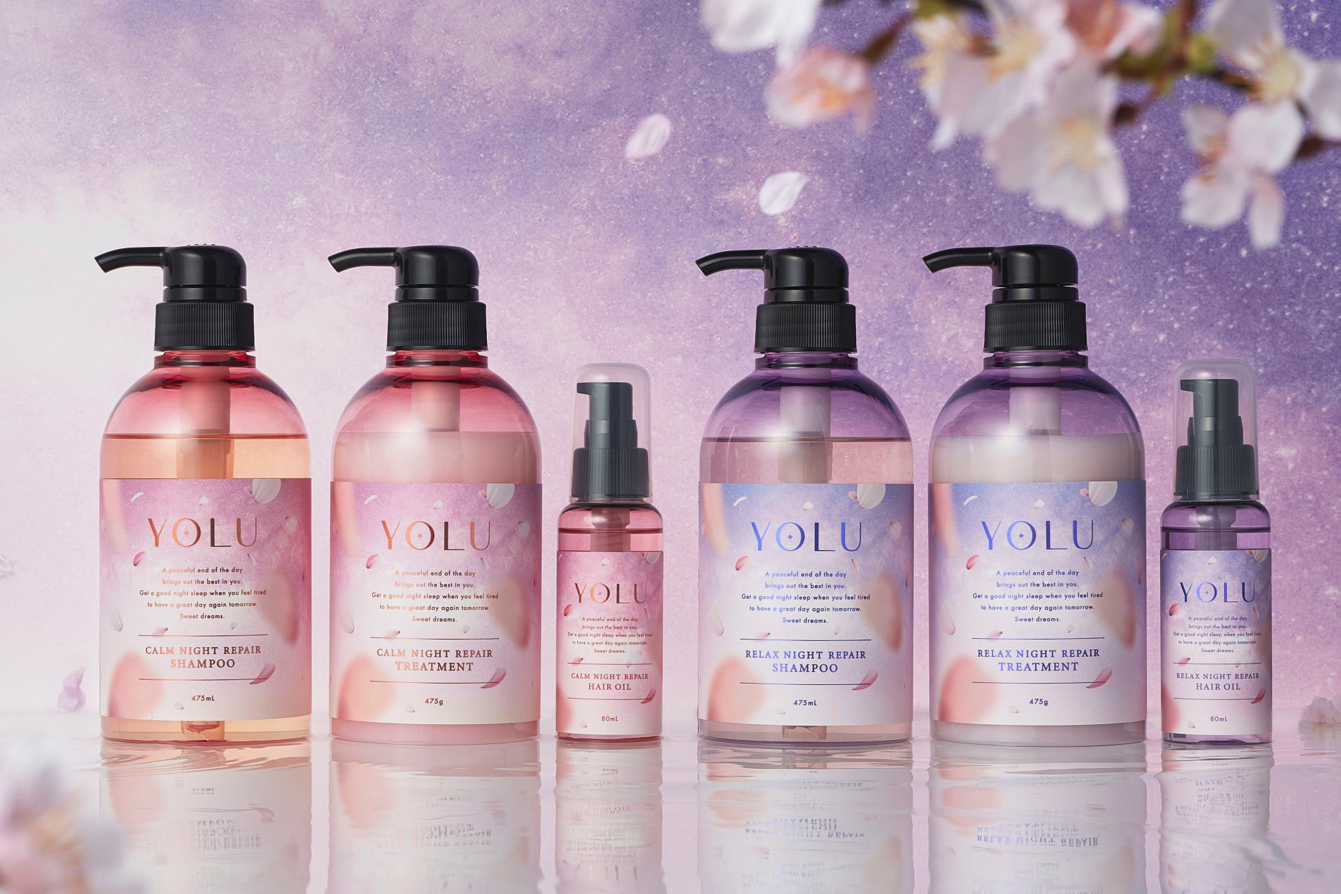そのような春の厳しい外的要因[**]から髪と地肌を守りながら、潤いを与える美容液成分を配合し、濃密補修できる「YOLU サクラ ナイトリペアシリーズ」。YOLUはブランド誕生からわずか1年でブランド累計販売数1000万突破[*]するなど、ご好評いただいている夜間美容ブランドです。コロナ禍のおうち美容の広がり、自分を労わる時間や、心に余白を持たせる美容タイム、ウェルビーイングなどへの意識の高まりから、ナイトケア市場も拡大傾向にあります。YOLUが提唱する「夜間美容」を取り入れ、髪と地肌をケアしながら、夜桜をイメージしたアロマティックフレグランスですっきりと浄化されるような安らぎのひと時をご体感ください。
