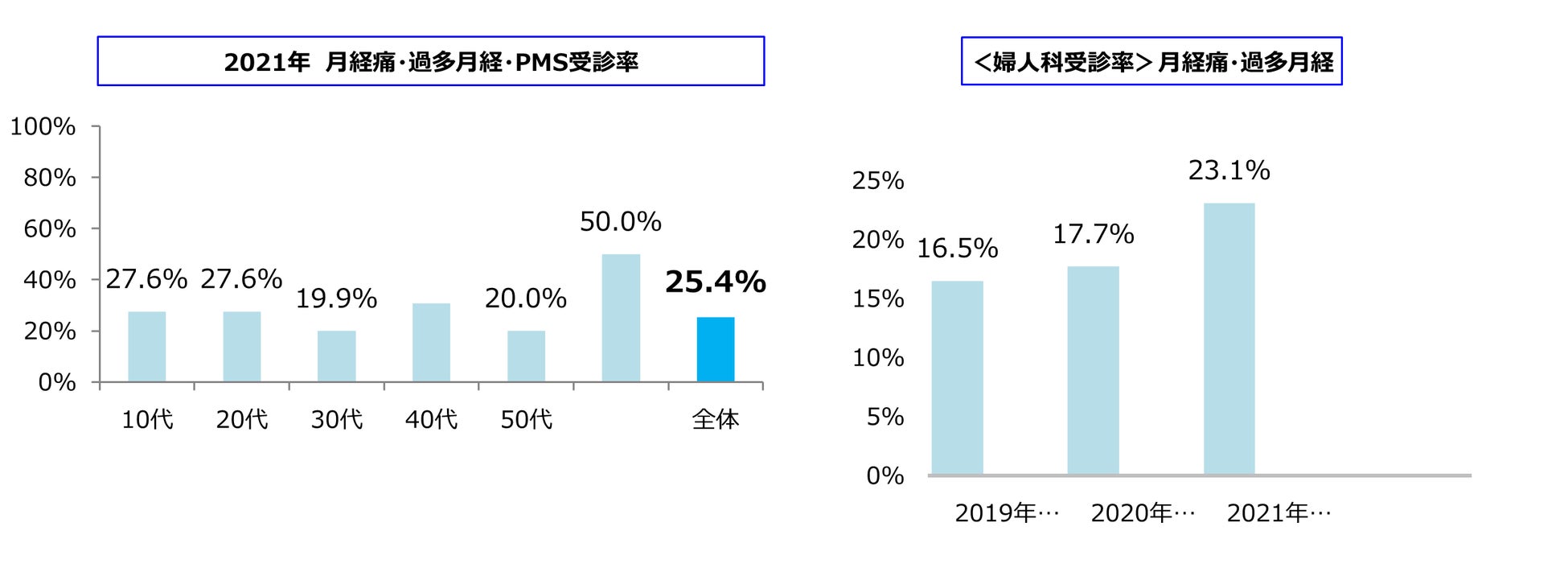 『月経時のおなかの痛みは、仕事に支障をきたしているが、我慢しているか』を月経痛有症状者に聞いた調査では、「はい」と回答した人が2019年は「70.8%」、2020年は「58.5%」、2021年は「62.0%」と言う結果に。常に約60~70%の従業員が月経痛による支障を抱えながら過ごしているものの、調査を開始した2019年と比べると約10%減少しました。月経痛の影響で仕事への支障がある従業員に向けては、婦人科受診しやすい環境作りが企業として必要であるとわかりました。