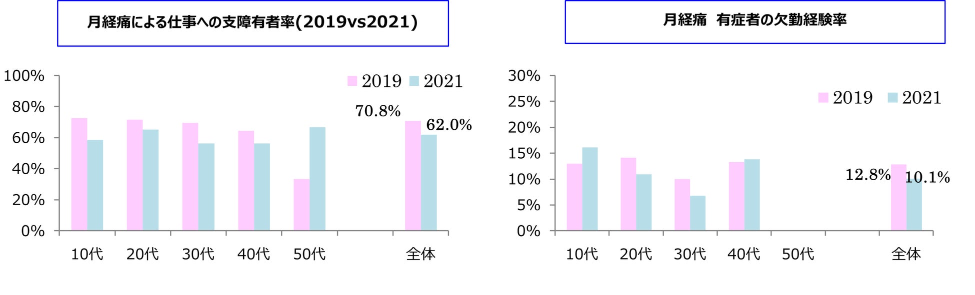 - 『月経痛』による仕事への支障者率は2019年から約10%減少、ヘルスリテラシー向上により自ら婦人科受診などのアクションを起こし、『月経痛』の支障がない従業員も増加!