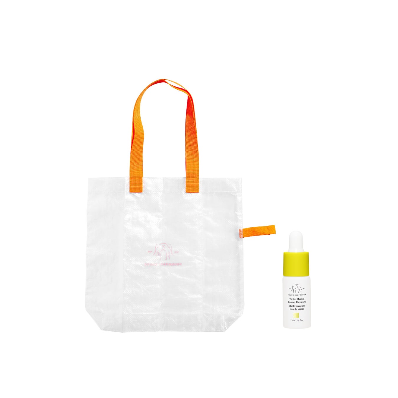 さらに、ドランク エレファント製品を12,000円(税込)以上ご購入で、特製エコバッグとバージンマルラ ラグジュアリー フェイシャルオイル特製サイズ(5mL)をプレゼント。