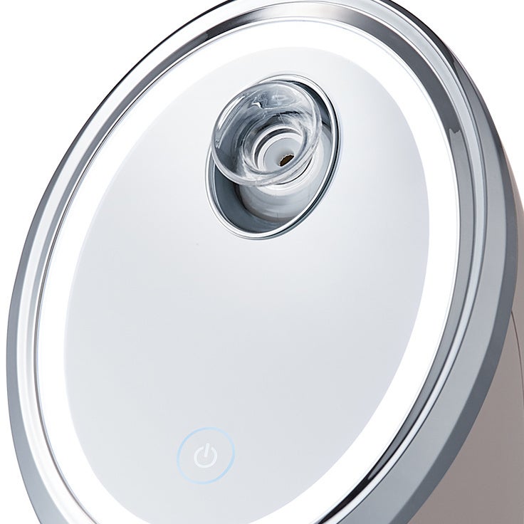 表面はガラスミラー&ライト付き。スチーマーを浴びながら、肌のコンディションをチェックできます。