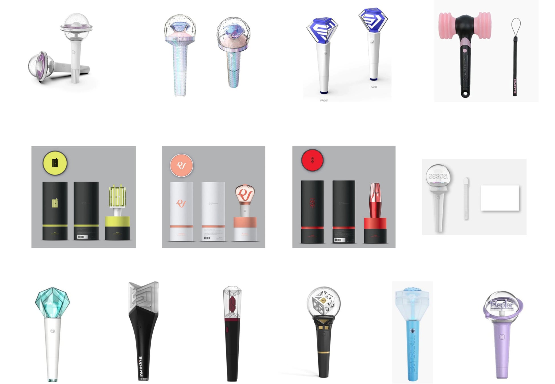 韓国・日本で人気の高い、NCT、SEVENTEEN、KEP1ER、TREASURE、SHINee、Red Velvet、SUPER JUNIOR、TWICE、MONSTA X、aespa、BLACK PINK、VERIVERY、JUNG YONG HWA、TVXQ!、SuperM、AB6IXのライブ・コンサートでも使用できる、公式ペンライトをこの「メガ割」の機会に購入可能です。