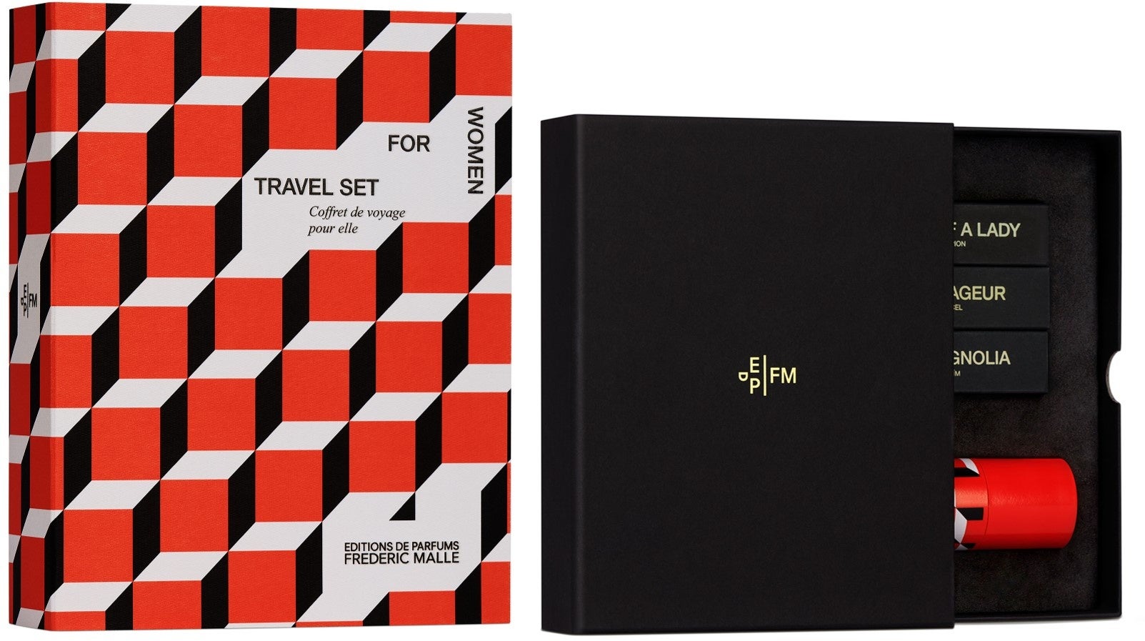 〈フレデリック マル〉が世界の名だたる調香師たちと共に創り上げた、いずれ劣らぬフレグランスの中から、人気の高い3種の香りの10mLサイズとそれを持ち運びできるトラベルスプレーをセットにしたギフトセット。ボックスを包むスリーブセットに納められたベークライト製のミニマルなデザインのトラベルスプレーは、ピエール・アルディを象徴する、グラフィカルな幾何学からなるキューブパースペクティブラインのモチーフをフレデリック マルのブランドカラーで彩った今だけの限定デザイン。ご自身のフレグランス携帯用として、そして大切な方へのギフトとしてもぴったりなスペシャルなアイテムです。