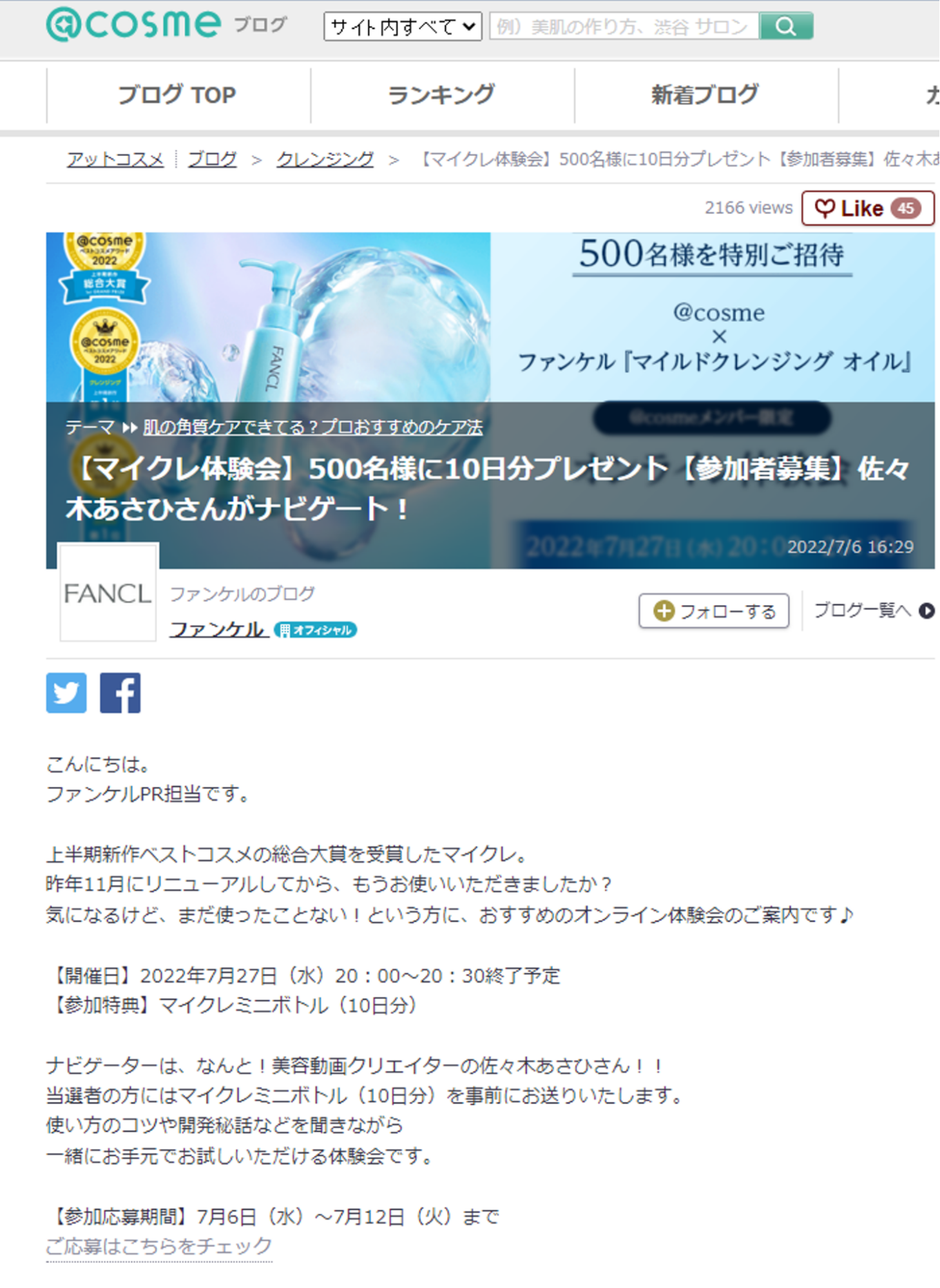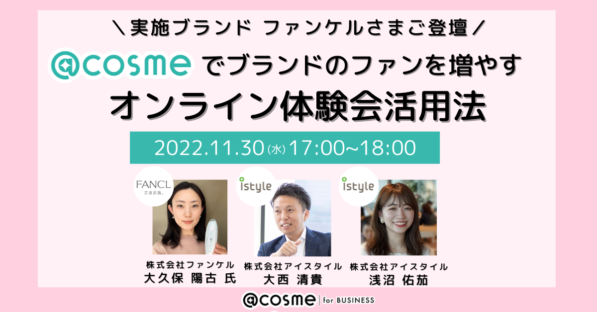自社でも様々なオンライン施策を実践されているファンケルさまだからこそわかる、@cosmeのオンライン体験会ならではの魅力やサービス特性を率直にお話いただきます。
