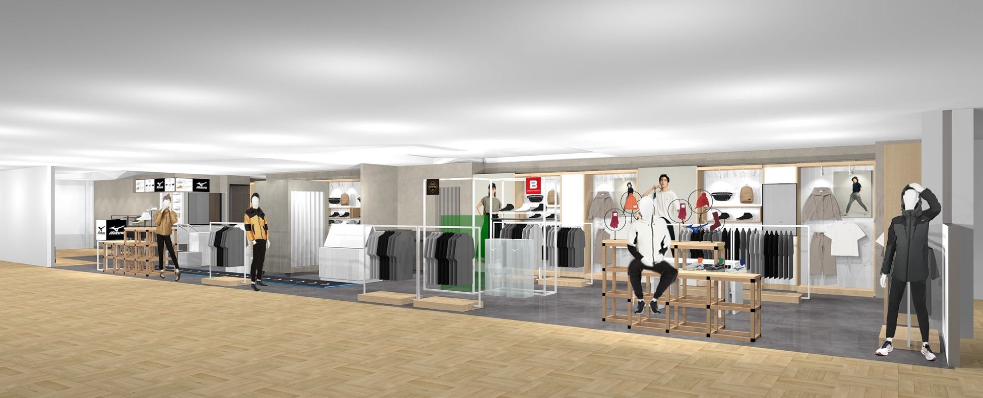 ミズノは、11月30日(水)に体験、体感、カスタムをテーマにしたアクティブライフスタイルショップ「ミズノプラス福岡三越」を福岡三越(福岡市中央区)7階にオープンします。