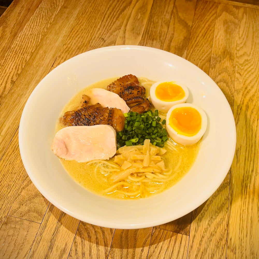 ラーメンに不健康なイメージを持たれてる方でも安心して食べられる、次世代のコク旨系鶏ベースラーメンに仕上がっています。(当面の間、ランチ営業時の提供数を1日30杯まで)
