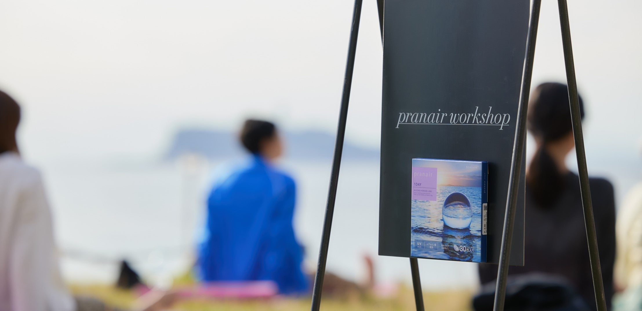 1日使い捨てシリコーンハイドロゲル素材のソフトコンタクトレンズ「pranair®(プラネア)」がコンタクトレンズユーザー限定に企画したイベント。ブランドが大切にしている「自分らしさ」や「ストレスからの解放」「心地よい生き方」にフォーカスして、自分に優しい明日を作るきっかけを作りたいという想いから、ヨガにも瞳にも重要となる「呼吸」をテーマにした、海辺ヨガ&トークライブを開催。