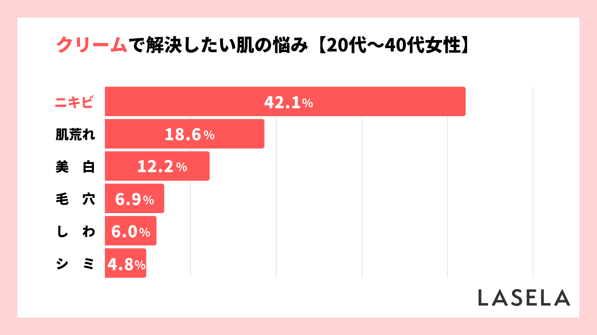 - クリームで解決したい悩みは「ニキビ」が42.1%で最多