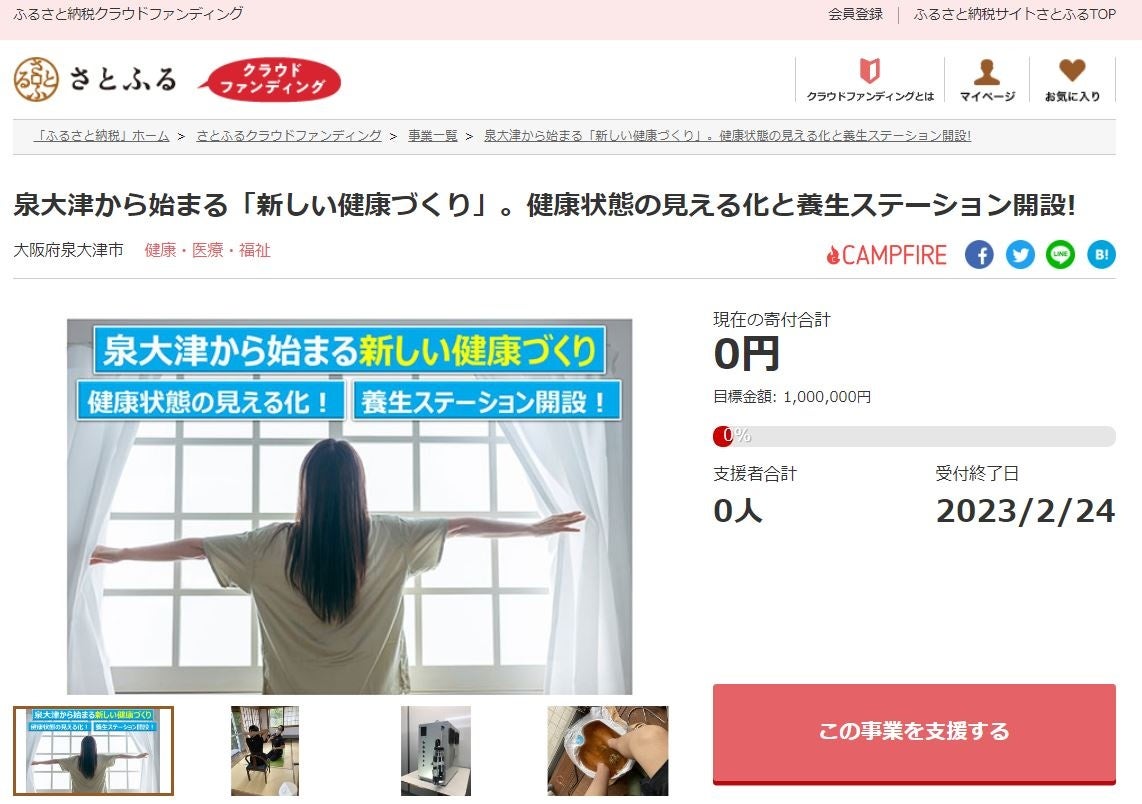 事業名:泉大津から始まる「新しい健康づくり」。健康状態の見える化と養生ステーションの開設!