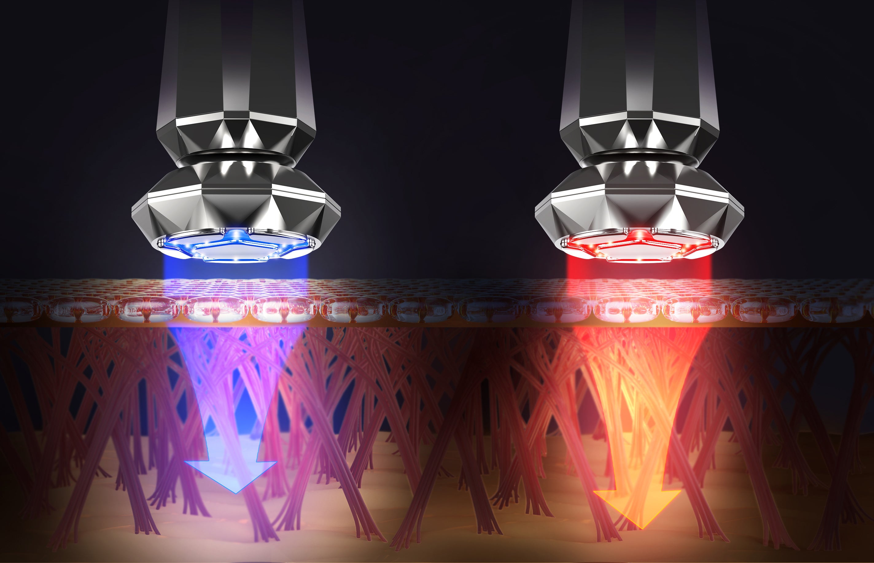 ※美しさを生み出す鍵「光エステ」。3色のLED「赤・青・緑」を肌の内部に透過させて、透明感あふれる肌に。