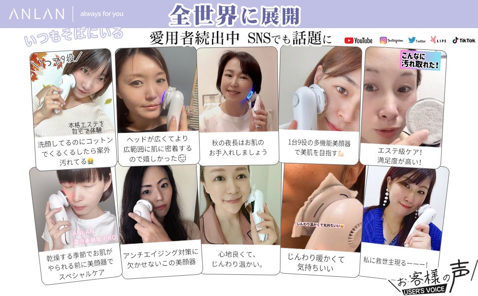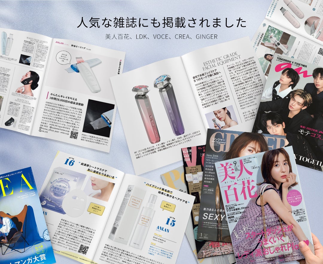 ※美顔器をサポートするANLAN関連製品:ANLANコットン、ANLANモイスチャーフェイスマスク、ANLAN保湿ジェル、ANLANアイクリームなどを併用するとより効果的。