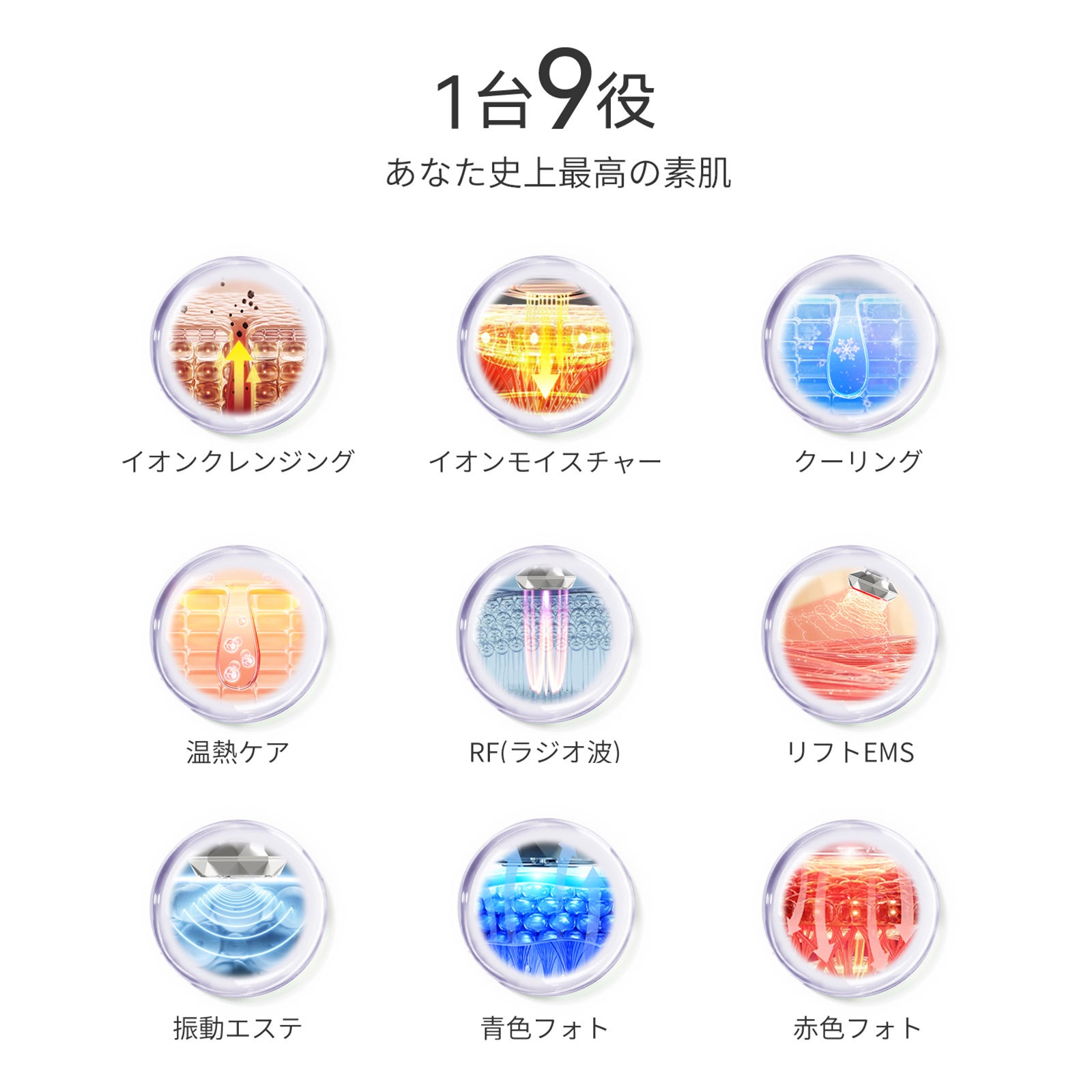 ※1台9役温冷美顔器PROが登場。温冷ケア、EMS、光エステ、イオンクレンジング・イオンモイスチャーでお肌を全方位的に集中ケア。