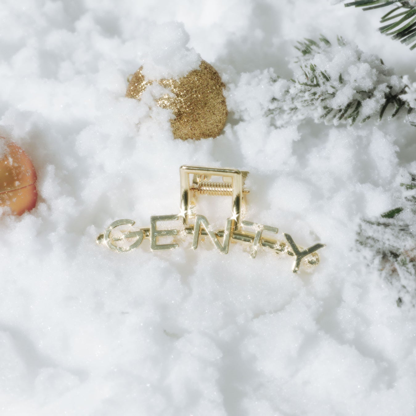 GENTYのロゴがあしらわれたヘアクリップです。ゴールドカラーで大人っぽいアップスタイルの際に最適です。しっかりと髪をホールドしてくれるので、毛量が多い方やヘアアレンジが苦手な方でも簡単にまとめ髪が作れます。