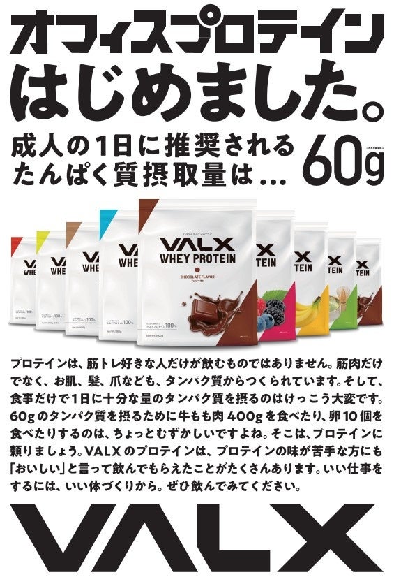 フィットネスブランド「VALX(バルクス)」を展開する株式会社レバレッジ(本社:東京都渋谷区、代表取締役:只石昌幸)は、オフィスで利用できる福利厚生サービスとして、「オフィスプロテイン」の提供を開始したことをお知らせいたします。