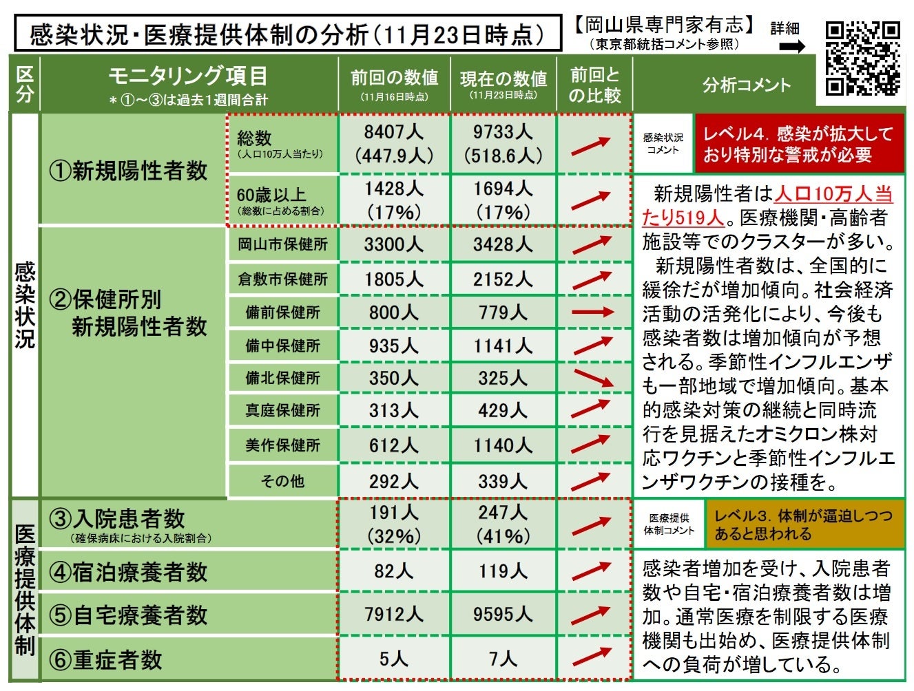 ・岡山県内の感染状況・医療提供体制の分析について(2022年11月16日時点)