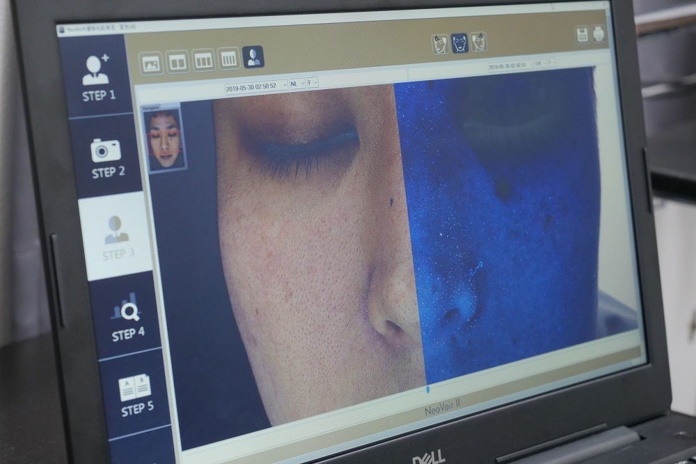 この「肌診断」は、ゴリラクリニックが美容機器製造メーカと共同で企画したオリジナルモデルの肌分析機「NeoVoirII Type-G(ネオヴォワールツー・タイプジー)」を使用。