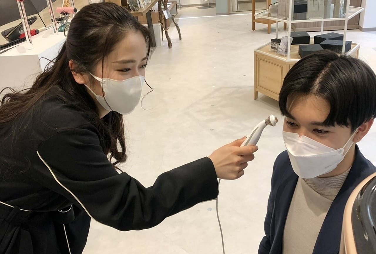 写真は当院カウンセラーによる無料の肌診断実施の様子。