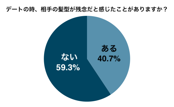 「デートの時、相手の髪型が残念だと感じたことがありますか?」と質問したところ、40.7%の女性が「ある」と回答しており、多くの女性が男性の髪型に対して残念に感じた経験があることが分かりました。