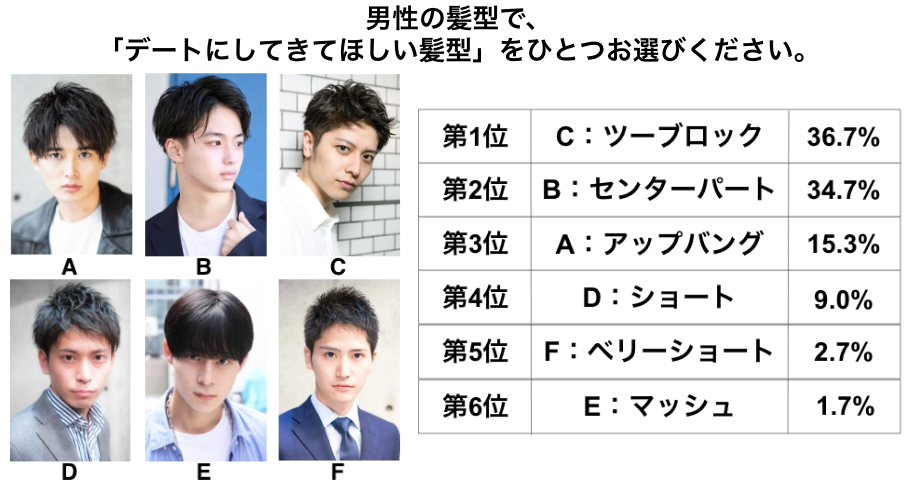 - デートにしてきてほしい髪型の1位は「ツーブロック」
