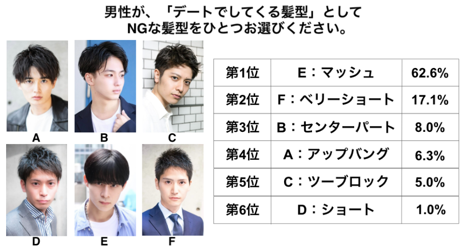 - 男性がデートにしてくるNGな髪型は「マッシュ」