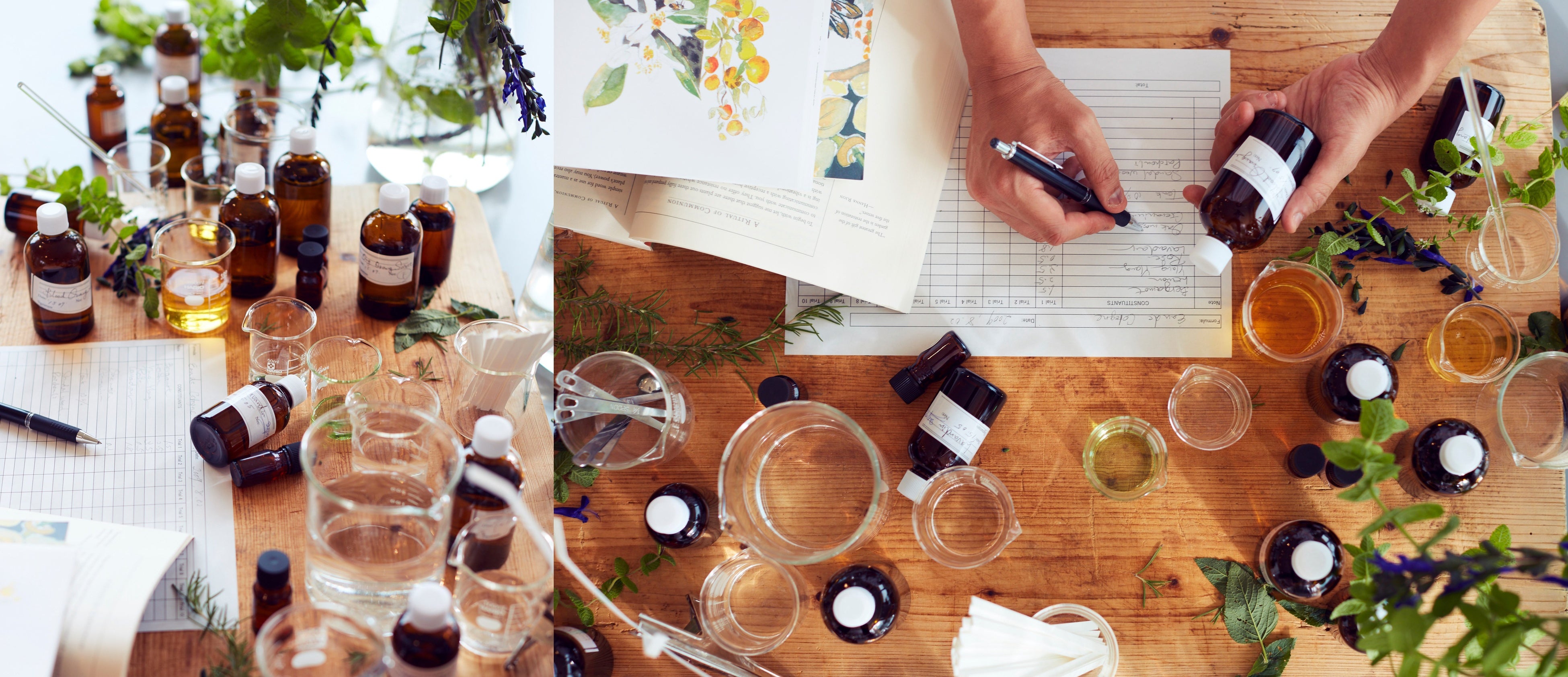 今回KAORIUM は、生活の木で取り扱われている16種類のアロマオイルから、お客様の“好きな香り”3つを選び出すお手伝いをいたします。ワークショップでは、選び出した香りを起点に、生活の木×KAORIUM 限定レシピのアロマブレンドをつくることができます。