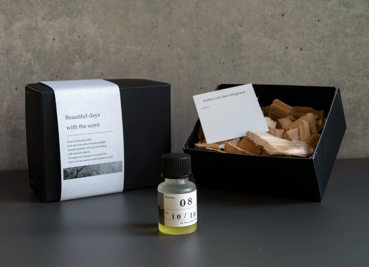 ④ ブレンドオイルが入ったボトルと、精油を垂らして香りを愉しめる