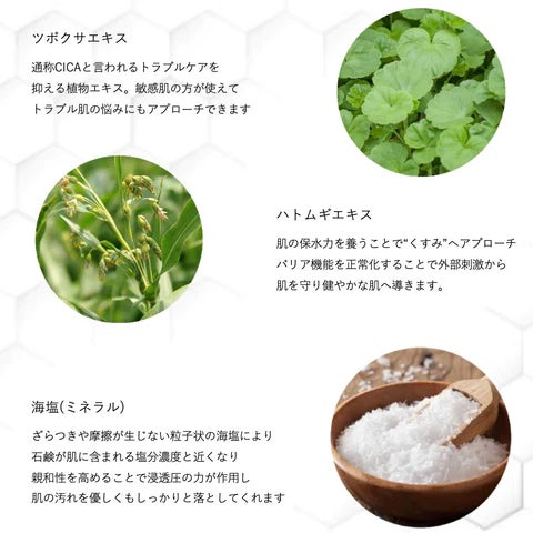 抗酸化に加えて複数の植物エキスを配合したことにより、ニキビに悩まれる方からアンチエイジングと幅広い層にお使いいただける石鹸です。