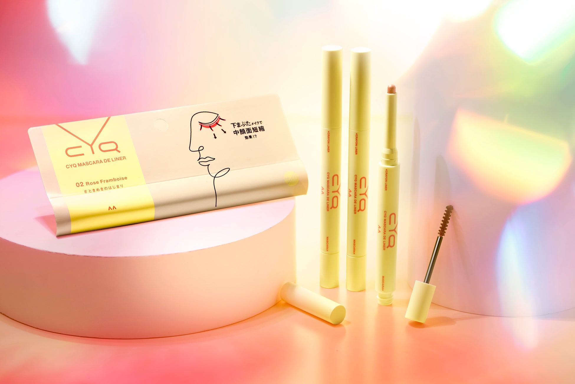 しかしメイクによって顔のパーツを動かし印象を大きく変えるには、高いテクニックや複数のアイテムが必要とされます。そこで、顔のパーツの配置をデザインし、印象を変えるパーツデザインコスメブランド『CYQ』から、クレヨンライナーとカラーマスカラがセットになった「シーワイキュー マスカラでライナー」を新発売します。1本で目もとの配置を簡単に変えられるよう計算しつくされた設計で、イマドキの目もと垢抜けカラーメイクや中顔面短縮メイクが完成します。