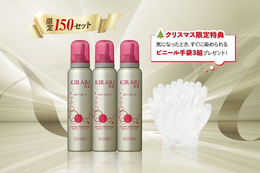 多くのファンの声に応えるかたちで今年限定復活し、大ヒットとなった白髪用トリートメント「キラリとろ~りムース」を3本セットでご提供。