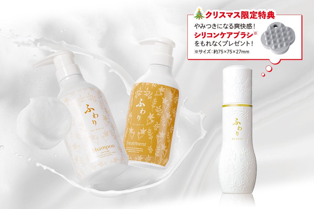 今年10月に発売した最新アイテム「ふわり シャンプー&ヘアトリートメント」を含むセット。