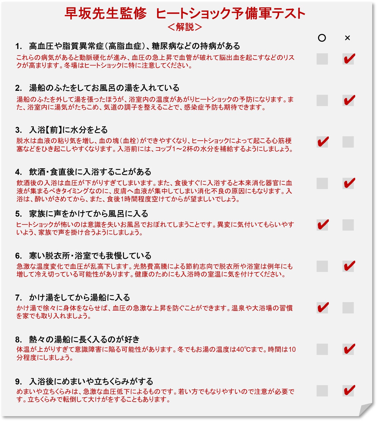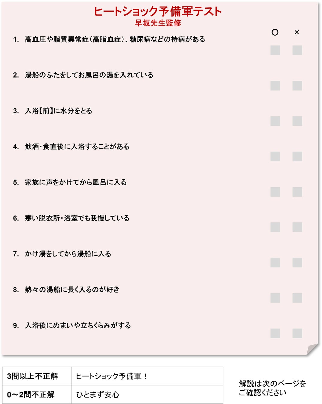 早坂先生監修の「ヒートショック予備軍テスト」で日ごろの習慣をチェックしてみましょう。