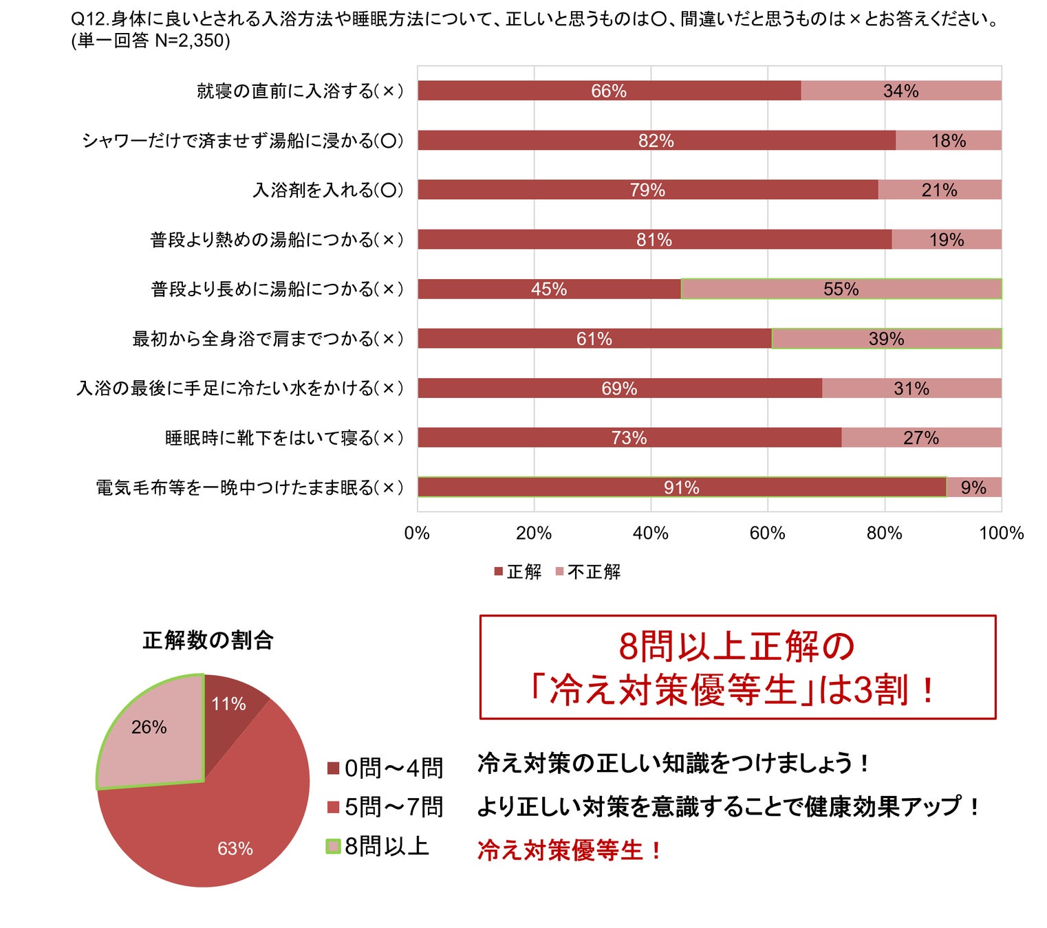 8問以上正解の「冷え対策優等生」 3割と少ない結果に