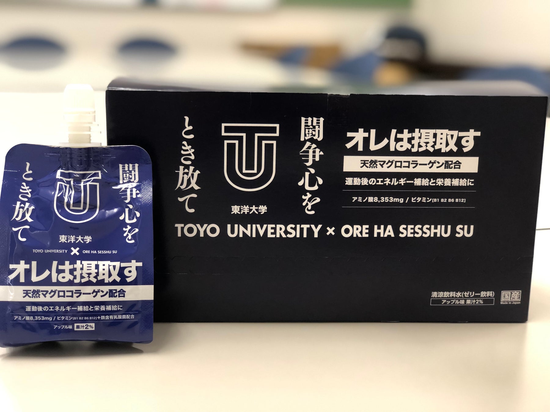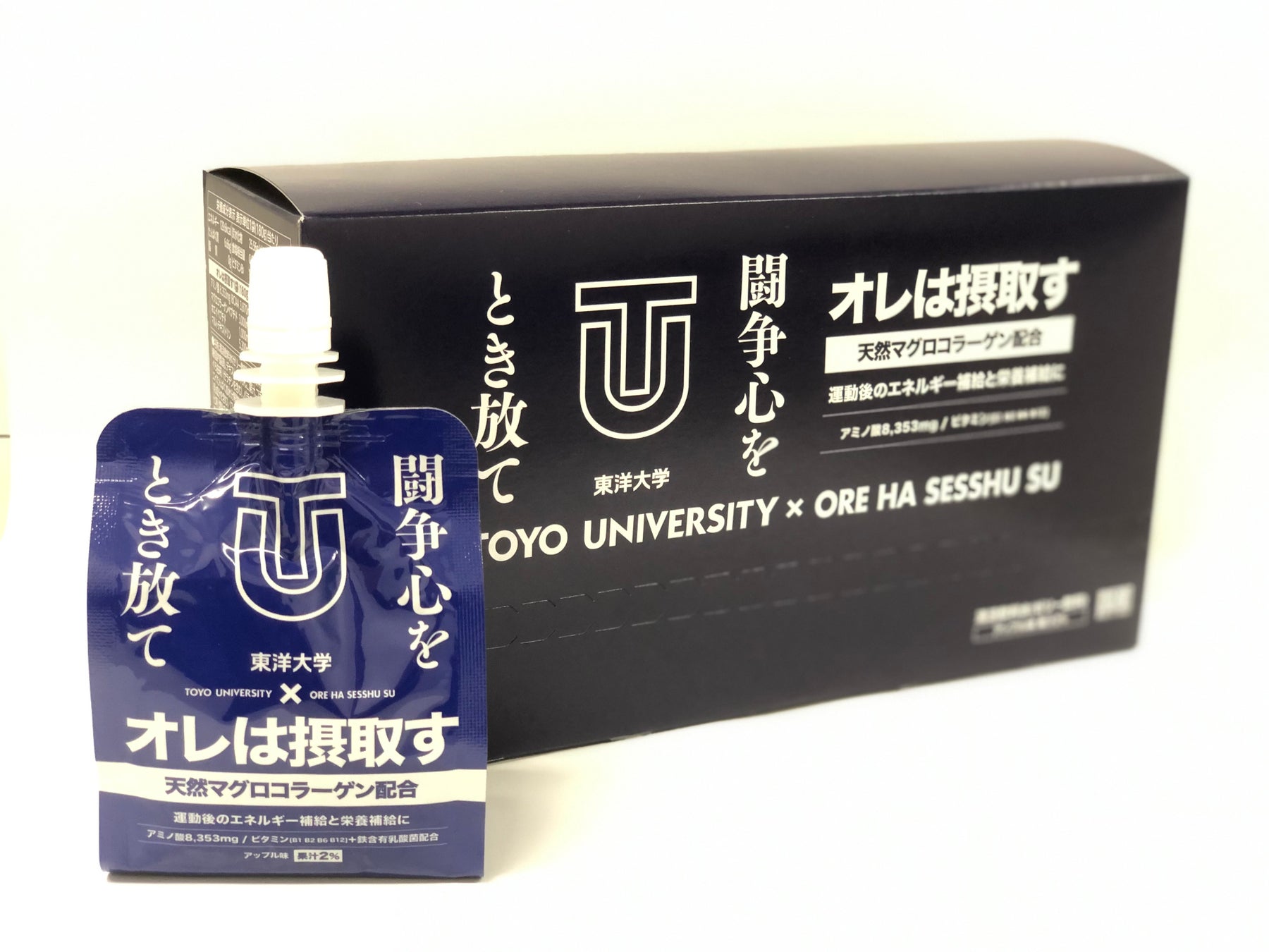 ダイトー水産株式会社(本社:静岡県焼津市、社長:齋藤啓治郎)は、学校法人東洋大学(理事長:安齋隆)と2022年10月1日付で商標権使用に関する契約を締結し、ダイトー水産株式会社が販売するリカバリーゼリー飲料「オレは摂取す」とのコラボ商品『オレは摂取す 鉄紺バージョン ~闘争心をとき放て~』(2022年バージョン限定販売)を2022年12月1日発売開始しました。