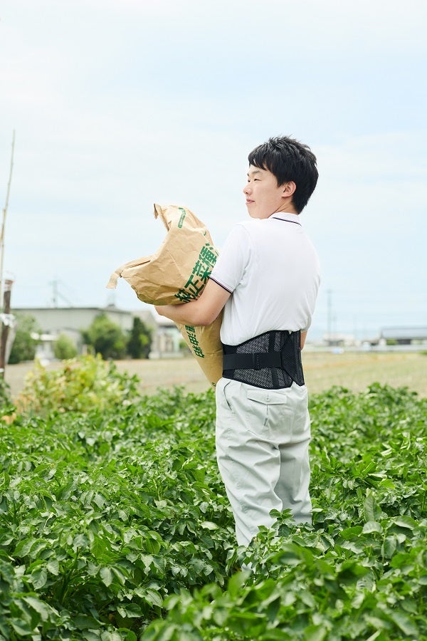 ​​中腰姿勢の負担を軽減する、柔軟・軽量なサポートギアです。腰への不安が多い工場や物流、農業、建築、介護従事者の負担を軽減する目的で開発されました。