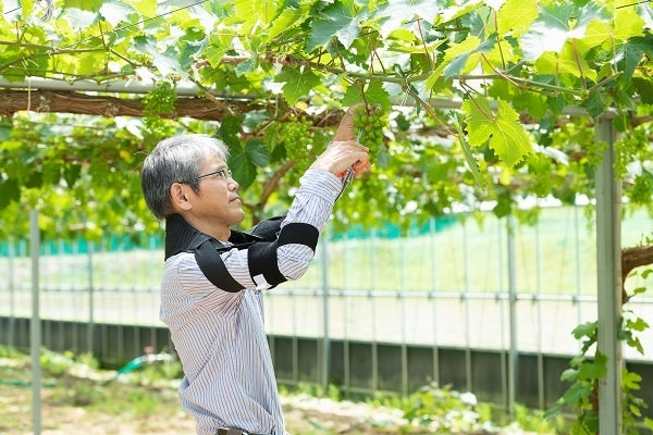 農家の方の身体の負担を研究し開発したサポーターで長時間の腕挙げ姿勢をサポートします。​上を向いての作業をラクにする腕上げ作業に特化したサポーターです。