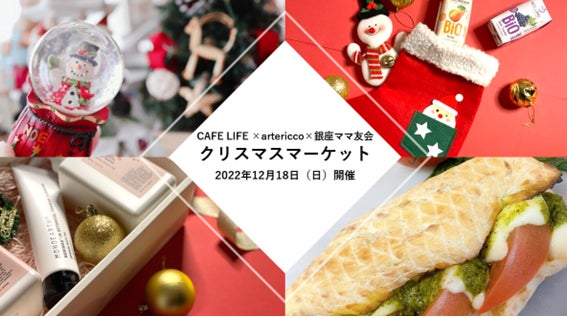 株式会社LIFE DESIGN (本社:東京都中央区銀座、代表取締役:飯田亜美) が運営する、ライフスタイルショップ 「artericco (アルテリッコ)」および託児サービス付きコミュニティ「銀座ママ友会」は、2022年12月18日(日)に、「CAFE LIFE(東京都中央区日本橋大伝馬町)」にて、お子様と一緒にクリスマスを楽しめるクリスマスマーケットを開催いたします。お子様や大切な人とともに、素敵なひと時をお過ごしください。