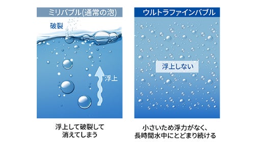 ※3:ウルトラファインバブルは、ISO(国際標準化機構)で定義された1マイクロメートル(1/1000㎜)以下の目に見えない小さな気泡です。近年では、経済産業省が水を変える確信技術として技術活用を推進しており、医療分野以外でも研究が進んでいます。
